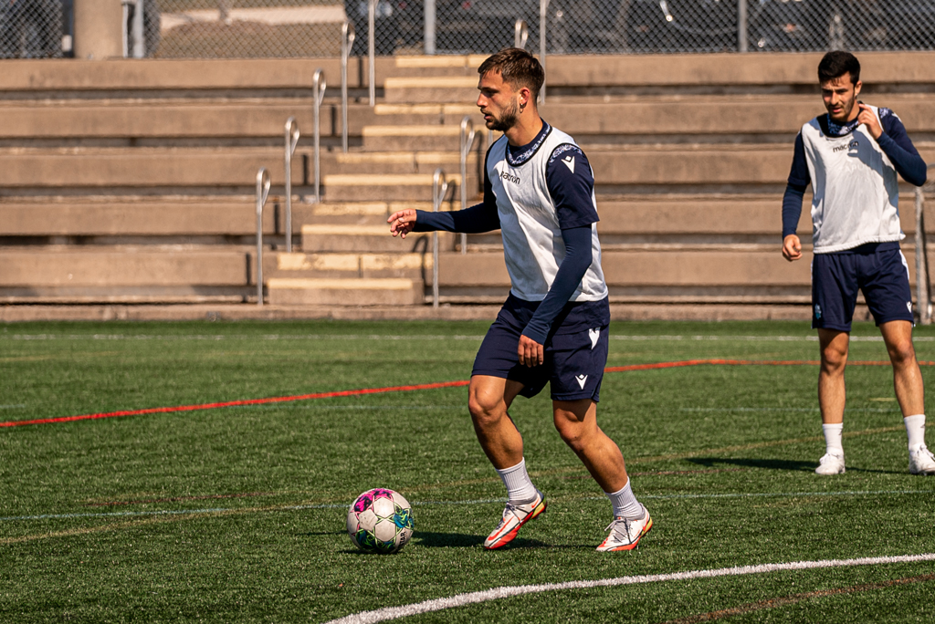 The ball is positioned on the right side of the pitch, 40-yards out from goal. Wesley Timoteo and Lorenzo Callegari are huddled together, discussing how best to cross the ball into the box. At one point, veteran keeper Yann Fillion calls out to them and gives some advice and they proceed to spend 10 minutes whipping crosses towards waiting teammates.